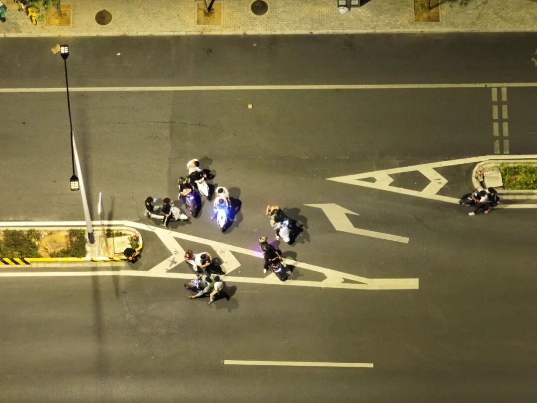 12 日凌晨 1 时 25 分,警用无人机实时回传画面,经确认现场行动条件成熟,现场指挥员当即下达行动指令,在周边隐蔽布控多时的警力迅速联动,同步出击,先后对净瓶山大桥周边三个路口实施临时管制,快速形成东西向辅道闭环管控态势,成功对在此聚集的飙车炸街人员开展联合打击行动。